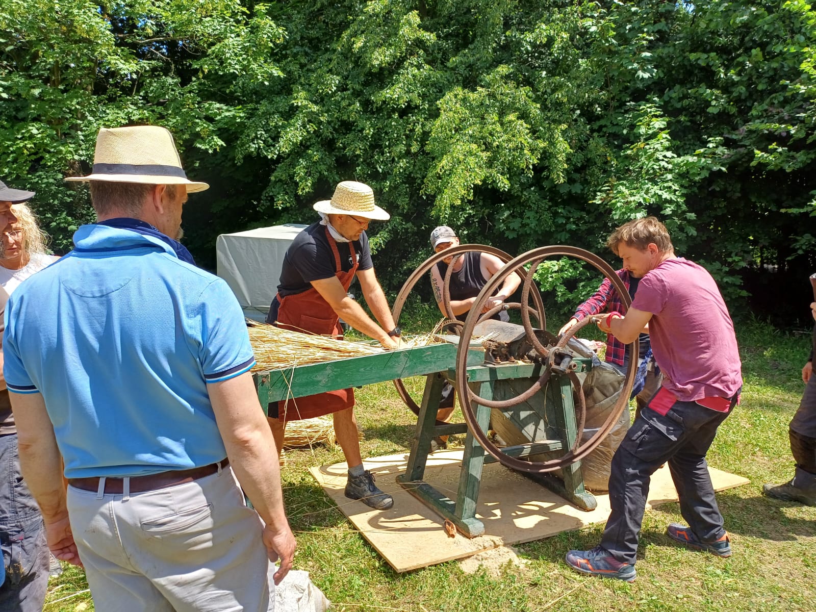 W tym roku planujemy otynkować komorę, wybiałkować izbę w chałupie ze Zborowskiego oraz nauczyć wykonywania polepy od „0” w jednym z obiektów z Bruśka. Jak w ubiegłym roku planujemy podział uczestników na grupy kilkuosobowe (np. praca przy betoniarce; tynkowanie, bielenie; wykonywanie polepy, transport). Działania grup będą wymienne tak by każdy uczestnik poznał i spróbował sił przy wszystkich pracach.